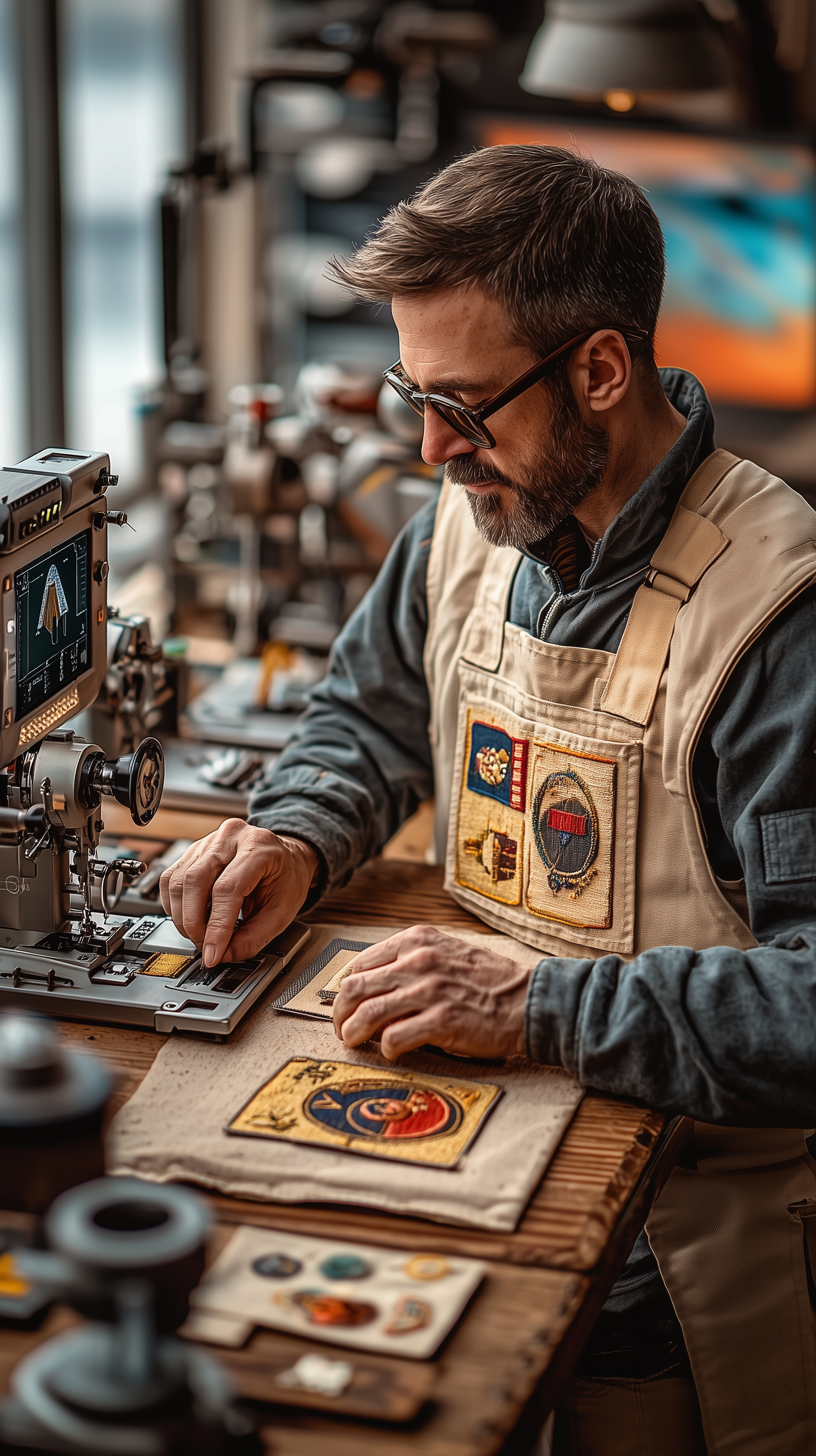 https://dhzkdndgolte1.cloudfront.net/eyJidWNrZXQiOiJtcG0tcHJvZHVjdGlvbi0yMDI1Iiwia2V5IjoicHJvbXB0cy9xaWJ0ZGZza2gxZzVtczQvaW1wb3J0cy8xNzcyODUxNTU2NjkxLTkyMGd2bC5wbmciLCJlZGl0cyI6eyJxdWFsaXR5Ijo5NX19 A seasoned artisan tailor in their 60s with weathered hands and focused expression, meticulously sewing a mission patch on a sleek computerized sewing machine in a 2037 space station laboratory, floor-to-ceiling windows revealing Earth below, modern minimalist architecture with clean white surfaces and soft ambient lighting, vintage wooden workbench cluttered with colorful fabric swatches, antique measuring tapes, thread spools in warm earth tones, fashion mood boards pinned to transparent digital displays, brass scissors and thimbles beside holographic design interfaces, the tailor wearing a classic canvas apron over contemporary space station attire, warm golden task lighting illuminating the vintage sewing tools contrasting with cool blue ambient light from the futuristic lab equipment, incredibly detailed textures of aged wood, worn leather, embroidered patches, and polished metal surfaces in a photorealism, contemplative, focused, nostalgic style, viewed from a medium-shot, eye-level-shot, shot on sony-a7r-iv, diffused-sunlight lighting, at afternoon, with a futuristic, intimate, eclectic vibe, accented by warm-ambient, studio-lighting, window-light, soft-shadows, volumetric-light, specular-highlights, featuring teal-and-orange, high-contrast, polychromatic, rust, gold, teal, silver, cream, warm, cool, with fabric, wood, metallic, leather, glossy-reflection, polished, subtle-glow --v 6.1 --ar 9:16 --c 5 --w 0 --q 1 --s 150 keypromptninja
